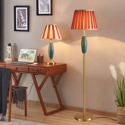 Brass Table Lamp Ceramic Desk Lampshade Retro Floor Lamp