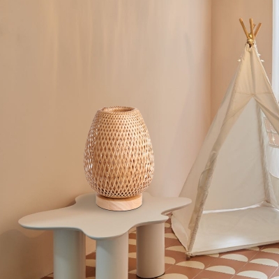 Bamboo Weaving Table Lamp Eye-Caring Bedroom Bedside Night Light